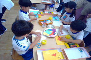 好きな形をハサミで切って貼ったよ! |