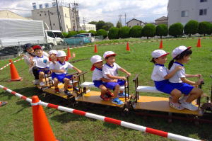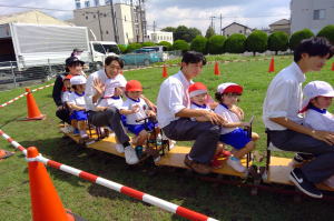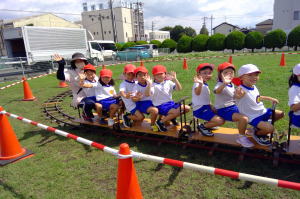 |  岐阜工業高校の皆さんがミニSLに乗せてくれたよ。気持ち良かったね! |