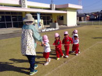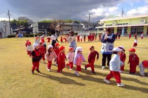 「1、2、1、2・・・」みんなでかけ声を掛けながら保育所周辺や園庭を走りました!