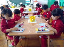 絵の具でスタンプ楽しいね♪