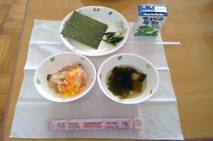 【鶏そぼろ丼・ひじき煮・味噌汁】 |