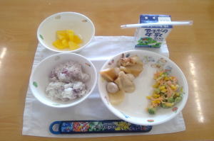 【ごはん・ふりかけ・南瓜ひき肉フライ・