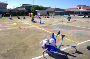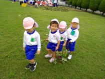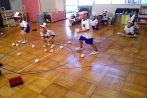 | お月見団子(ボール)をたくさん拾う競争をしたよ! |
