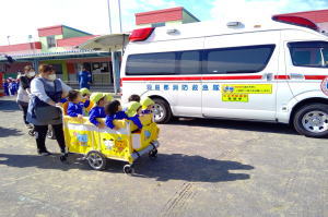 | 救急車に乗る体験もしたよ! |