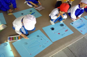 消防車や救急車を見て絵を描いたよ! |