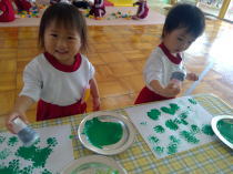 絵の具でスタンプ楽しいね♪