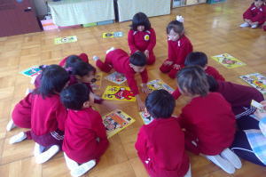 大型かるたで遊びながら